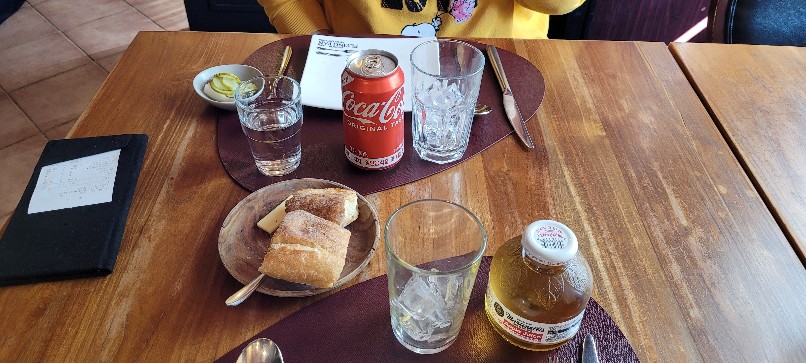 세트 메뉴가 나오기 전 빵과 음료가 준비되었습니다.