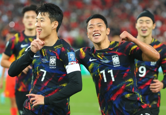전반 추가시간에는 이강인의 코너킥을 손흥민이 헤더로 연결하며 두 번째 골을 성공시켰습니다.