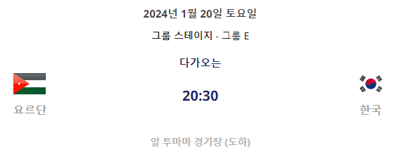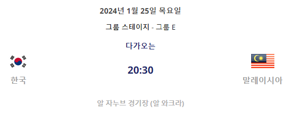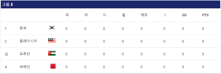 E조에는 말레이시아, 요르단, 바레인이 같은 조에 속해 있으며, 대한민국은 바레인과 1월 15일 첫 경기를 갖게 됩니다.