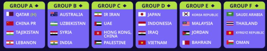 AFC 카타르 아시안컵은 24개의 팀이 6개의 그룹으로 나뉘어 예선전이 진행됩니다. 대한민국은 피파랭킹 23위로 아시아에서 3위에 해당되어 1번 시드를 받았습니다.