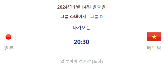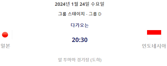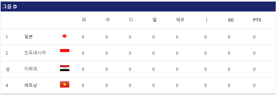 D조에는 인도네시아, 이라크, 베트남이 같은 조에 속해 있으며, 인도네시아와 1월 14일 첫 경기를 갖게 됩니다.