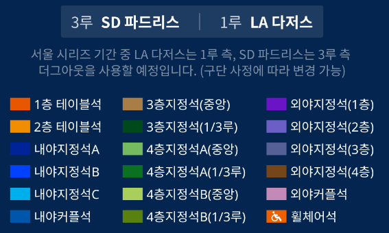 1월 26일부터 LA다저스 대 SD 파드리스의 경기 예매가 가능합니다. 나머지 경기도 예매일을 잘 확인하시고 직관하실 분이라면 티켓을 꼭 예매하시기 바랍니다.