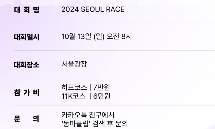 서울 레이스 참가 신청 접수는 동마클럽 플랫폼에서 회원가입 후 참가 신청이 가능합니다. 많은 분들이 참여할 것으로 예상되기에 빠른 마감이 예상됩니다.