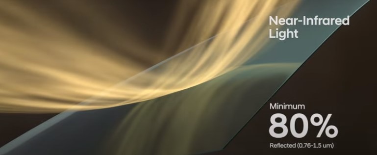현대차 기아에서 개발한 나노쿨링필름은 태양 에너지의 근적외선대 파장을 반사하는 두 개 층과 내부의 중적외선대 파장을 외부로 내보내는 층을 포함, 총 세 개 층으로 구성되는데, 이 필름을 차량 유리에 부착하면 유리를 어둡게 하지 않으면서도 여름철 실내 온도를 10도 이상 낮출 수 있으며 내부 시트의 수명도 연장시킬 수 있습니다. 결과적으로 차량의 실내를 식히는 데 들어가는 에너지 소비를 낮출 수 있고 차량 유지비도 절감하는 효과가 있는 신기술입니다.