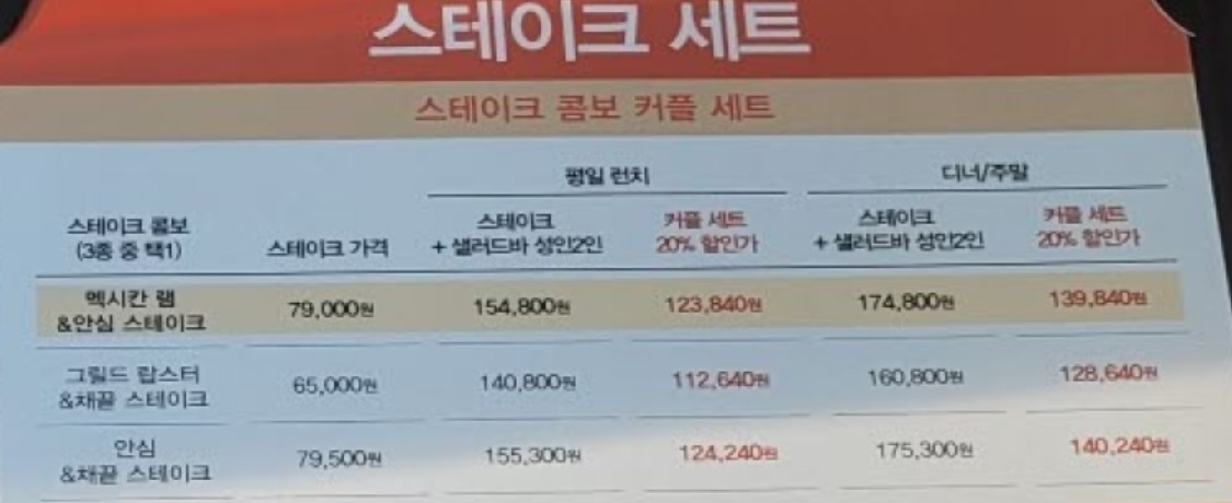 저희 가족은 안심&채끝 스테이크 세트로 주문을 하면서 아이들 샐러드바 2인 이용을 추가했습니다.