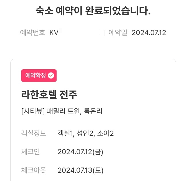 갑작스럽게 전주 한옥마을 근처에 일정이 생겨 가는 김에 가족과 1박 하면서 한옥마을 여행도 하면 좋을 것 같아 라한호텔 4인 숙소로 예약했습니다.