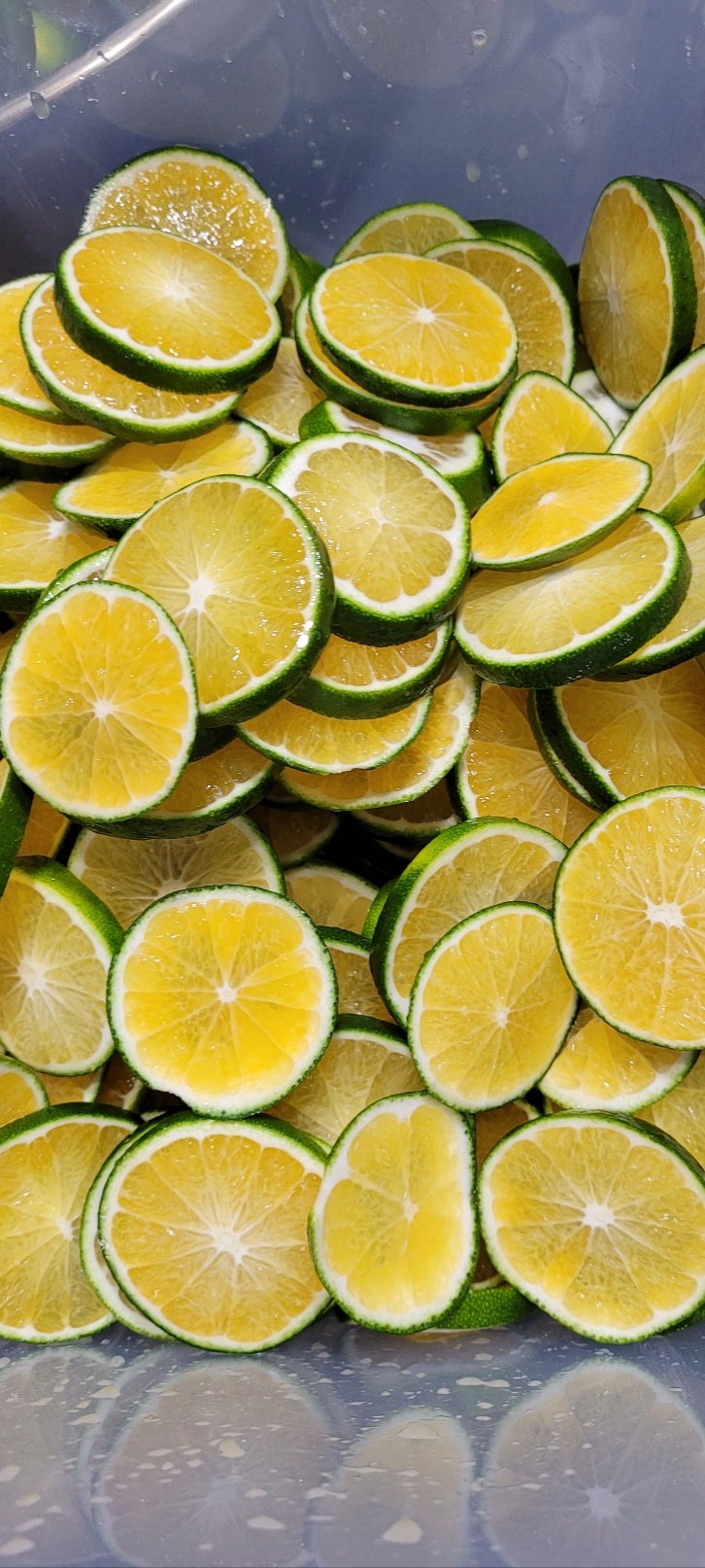 슬라이스가 끝나면 백설탕을 1대 1 비율로 넣어주고 설탕이 잘 녹을 수 있도록 섞어줍니다.