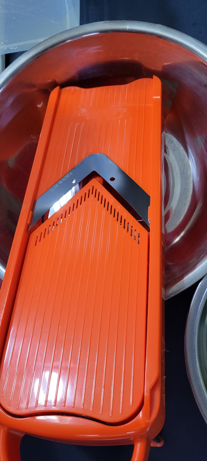 곰돌이 채칼을 이용하여 적당한 두께로 슬라이스 해줍니다. 청이 발효되면 두께가 얇아져 깨지기 쉽기 때문에 조금은 두껍게 슬라이스 하는 게 좋습니다.