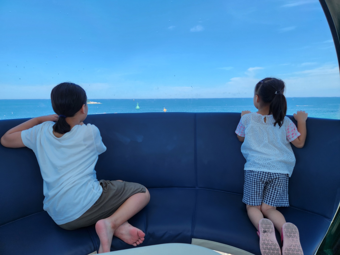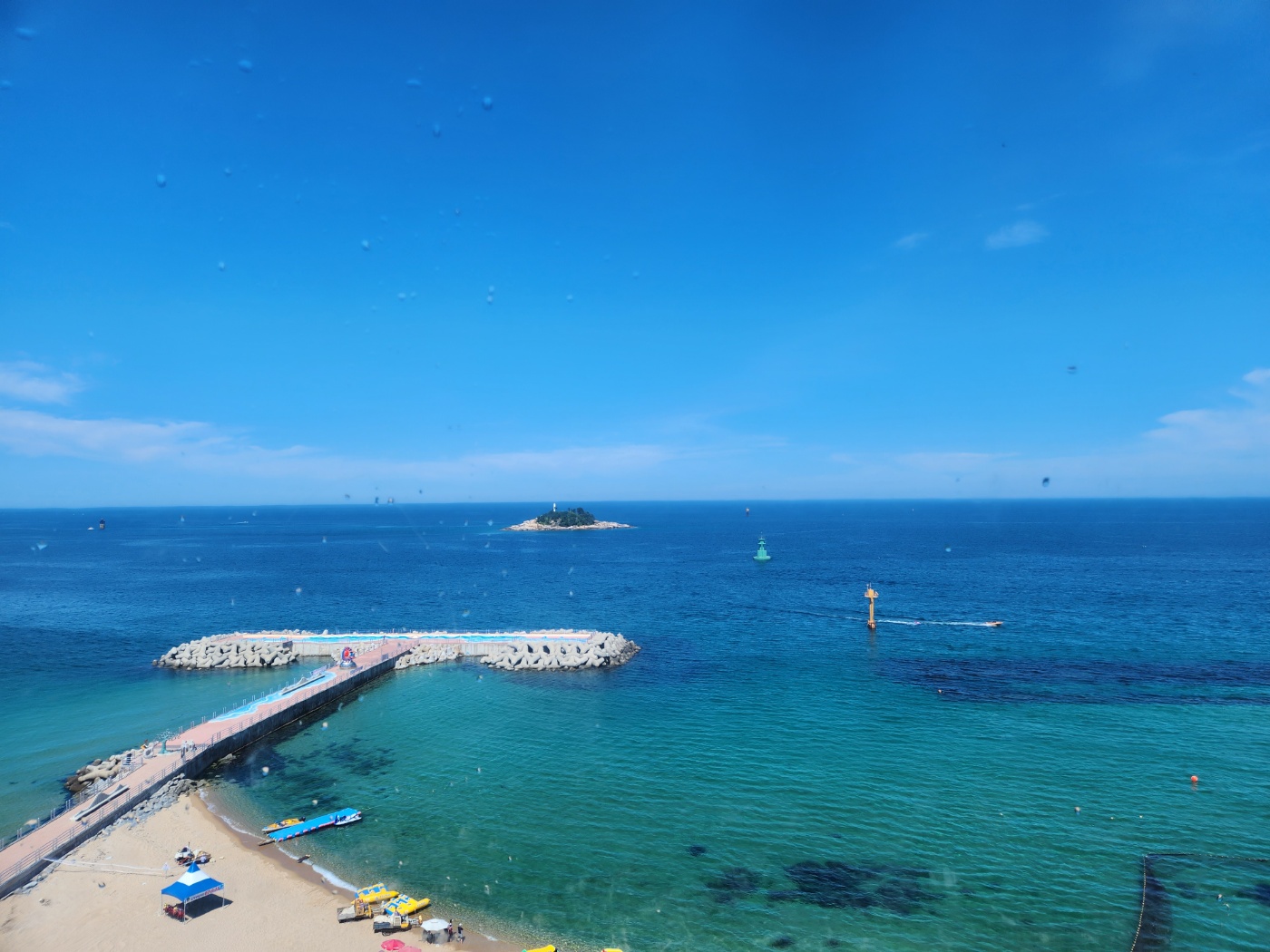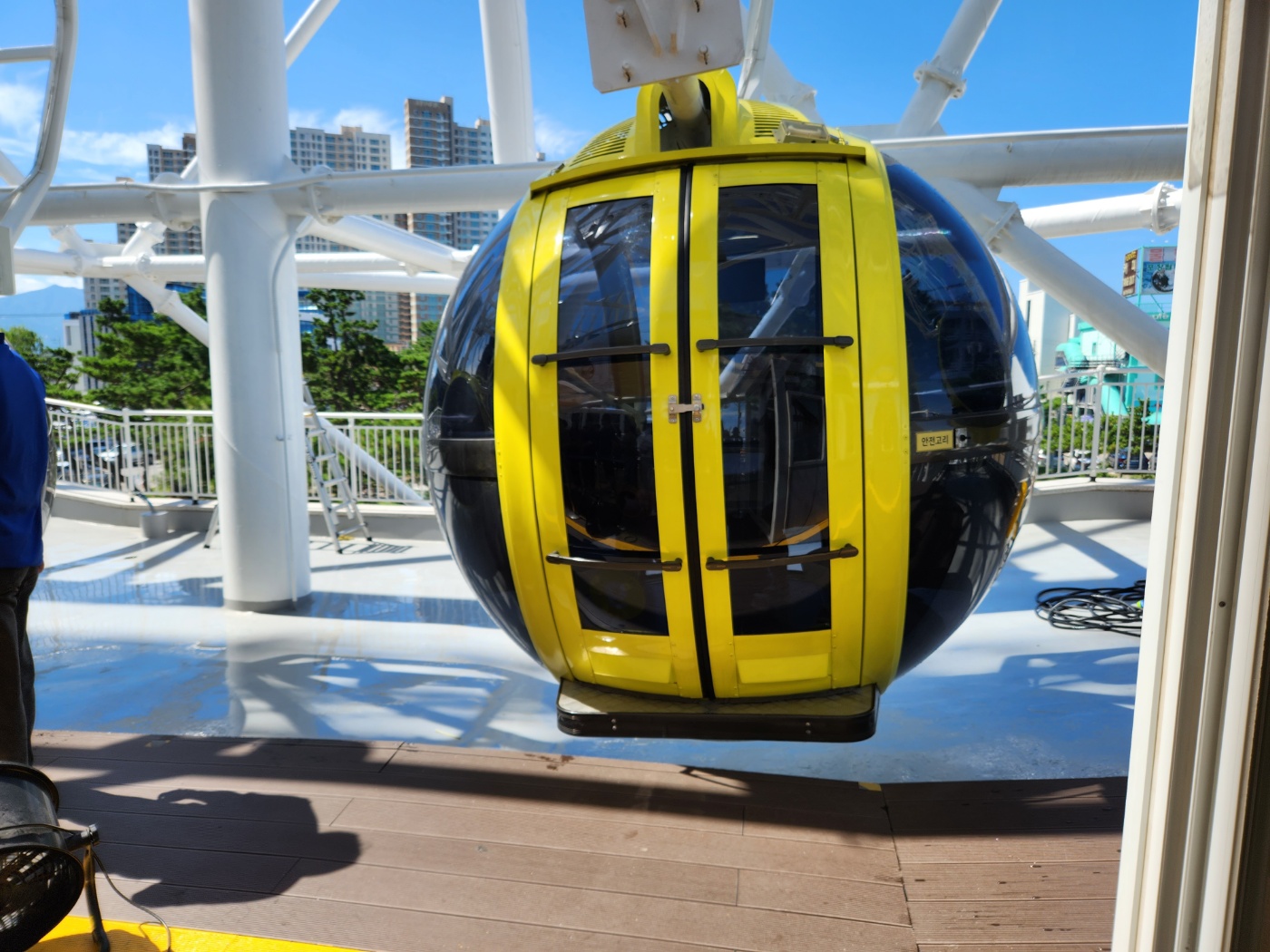 대관람차의 내부가 매우 쾌적하고 시원한 편이었고 한눈에 내려다보이는 푸른바다는 바닷물에 들어간 것 같이 시원한 느낌까지 안겨주었습니다.