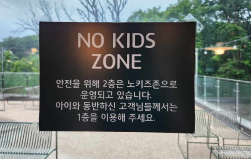 외부로 나가는 곳에는 노키즈존 안내가 있고 비가 많이 와서 인지 잠겨있었어요~~