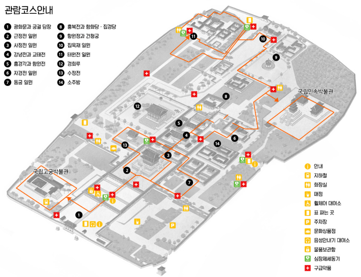 안녕하세요! 경복궁에 방문하시는 분들을 위해 간단한 안내를 준비했습니다. 경복궁은 대한민국의 대표적인 궁궐로, 아름다운 조각과 건물들이 함께 어우러진 곳입니다. 이곳에서는 한국의 역사와 문화를 체험할 수 있습니다. 아래는 경복궁 방문 시 유의사항과 주요 시설에 대한 안내입니다.