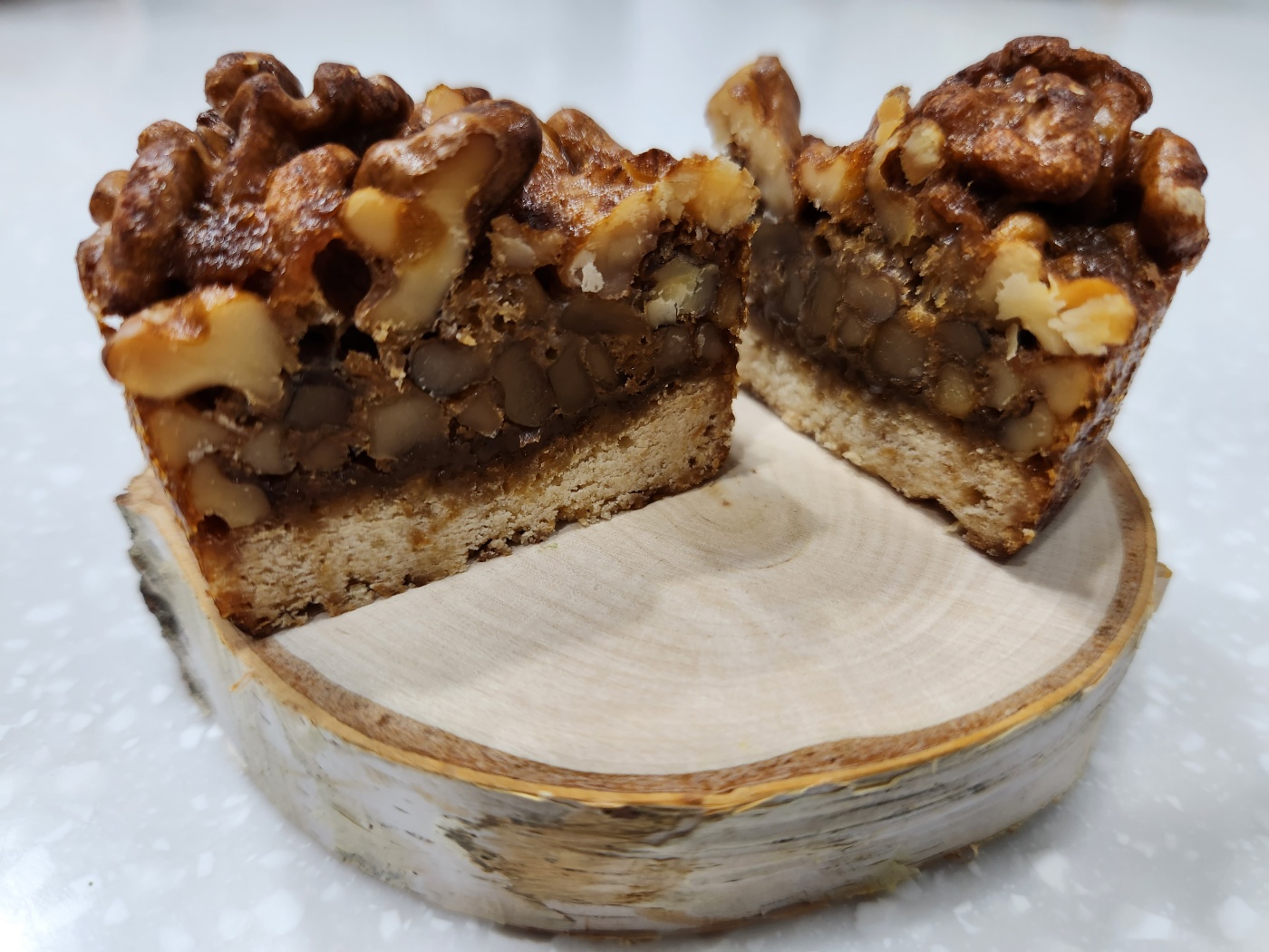 호두파이 단면 사진입니다. 속이 알차게 꽉 차 있어 식감이 매우 좋습니다.
