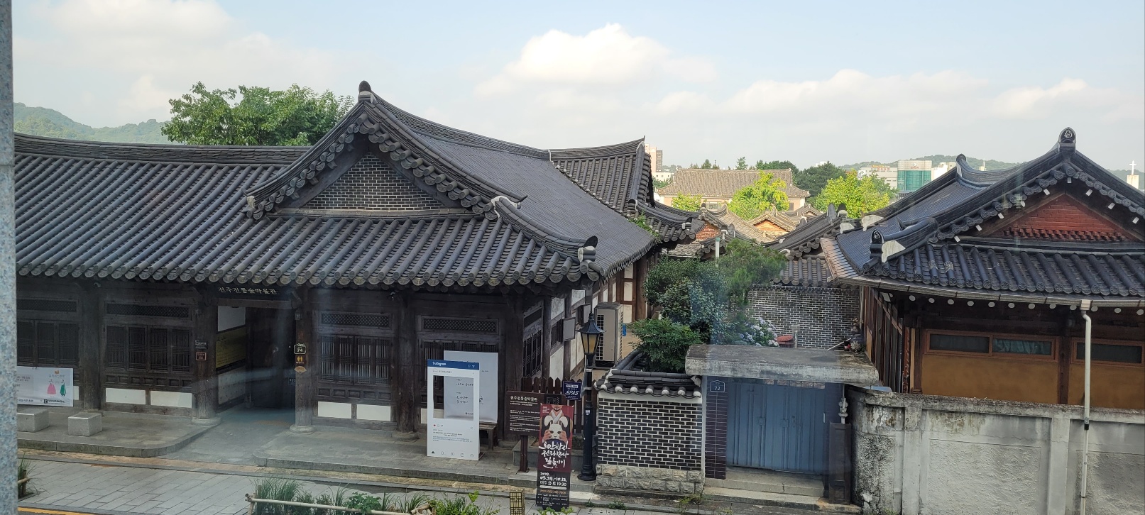 라한 호텔 입구에서 보이는 한옥마을 전경입니다.