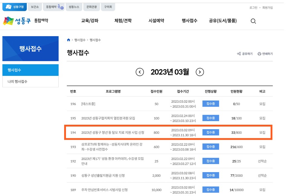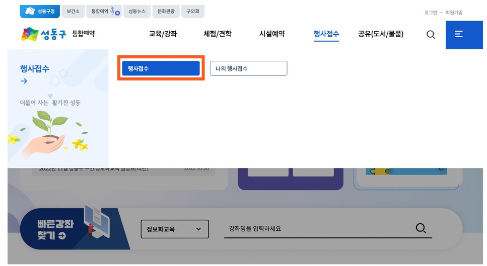 2. 성동참여를 누르고 행사 접수에 들어갑니다.