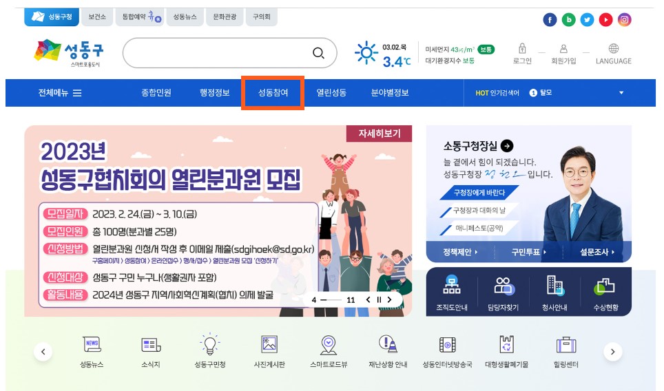1. 먼저 성동구청 홈페이지에서 회원가입 및 온라인 접수를 해야 합니다.