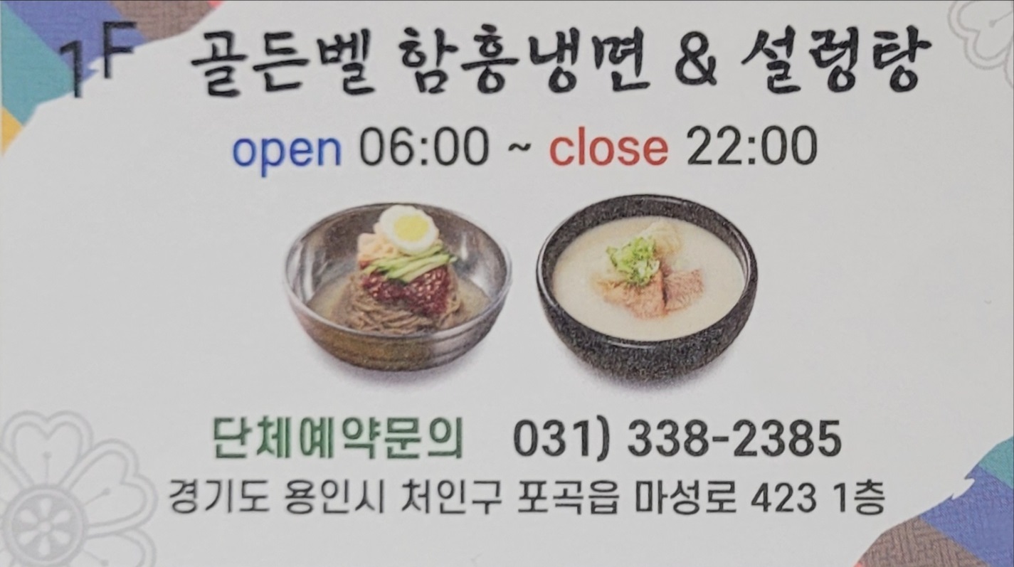 용인 라마다호텔 맞은편에 있는 골든벨 한식당 입니다. 1층에서는 한식을 주로 하고 2층에서는 한우, 삼겹살 메뉴를 취급합니다.